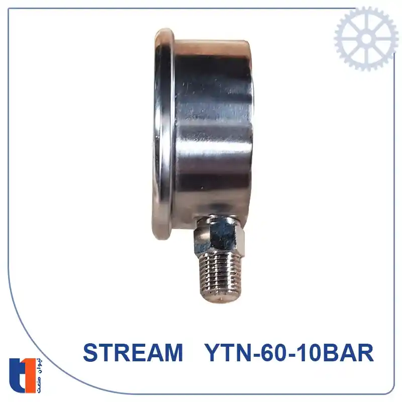 مانومتر روغنی استنلس استیل اتصال از پایین استریم مدل YTN-60-10Bar جهت استفاده هیدرولیک، پنوماتیک و آب است.