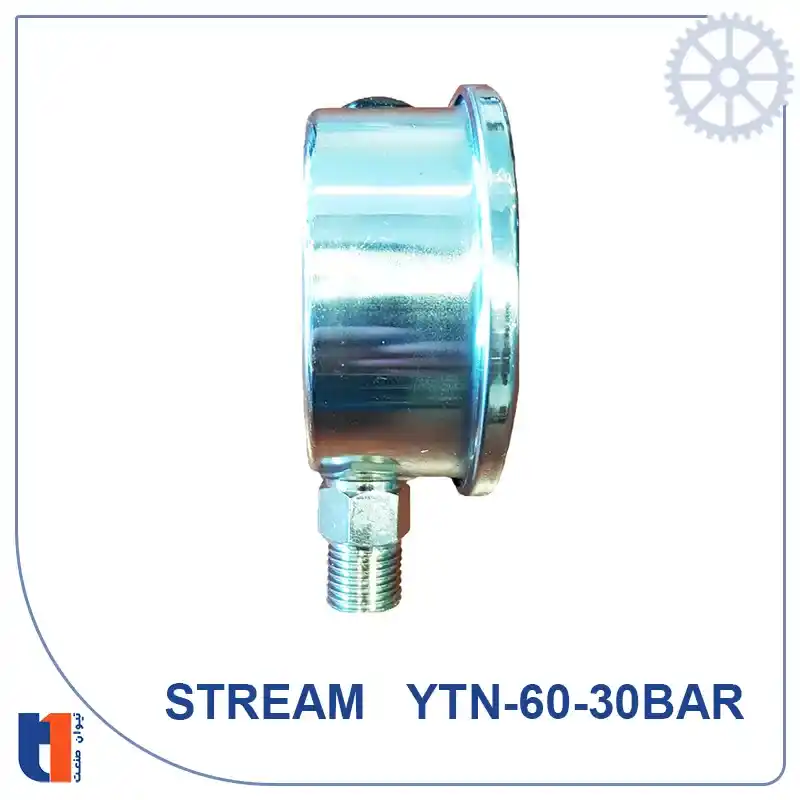 مانومتر روغنی استنلس استیل اتصال از پایین استریم مدل YTN-60-30Bar جهت استفاده هیدرولیک، پنوماتیک و آب است.