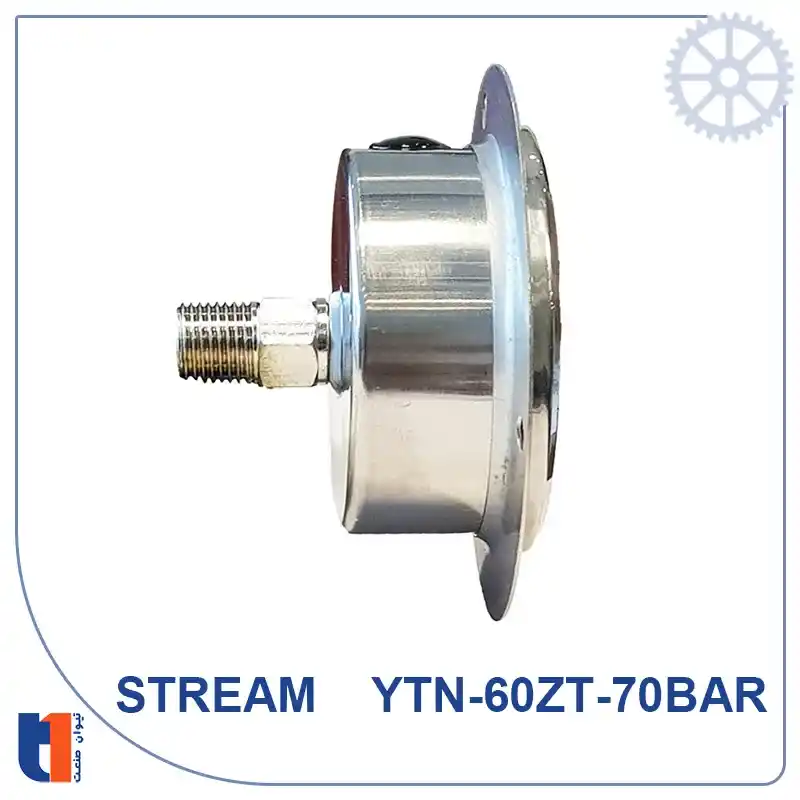 مانومتر روغنی استنلس استیل اتصال از پشت-تابلویی استریم مدل YTN-60ZT-70Bar جهت استفاده هیدرولیک، پنوماتیک و آب است.